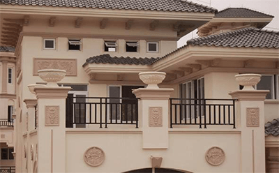 自建別墅可以采用GRC構件。GRC具有以下優點:①質量輕、強度高。②工期短、維護方便、易更換。③防火、防水。④抗污、不變形、超耐久。⑤環保 、無輻射。⑥無限可塑性。⑦薄技術、尺寸大。⑧質感好、肌理多。⑨色彩豐富、造型多樣。