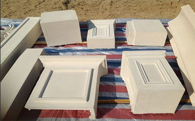通常在GRC產品從模具中脫出后進行處理,一般通過水磨、酸洗、噴砂、鑿石、著色、噴涂等方式,使得GRC表面的骨料暴露出來或者獲得其他的效果,使GRC歐式構件具有特殊的表面裝飾效果。